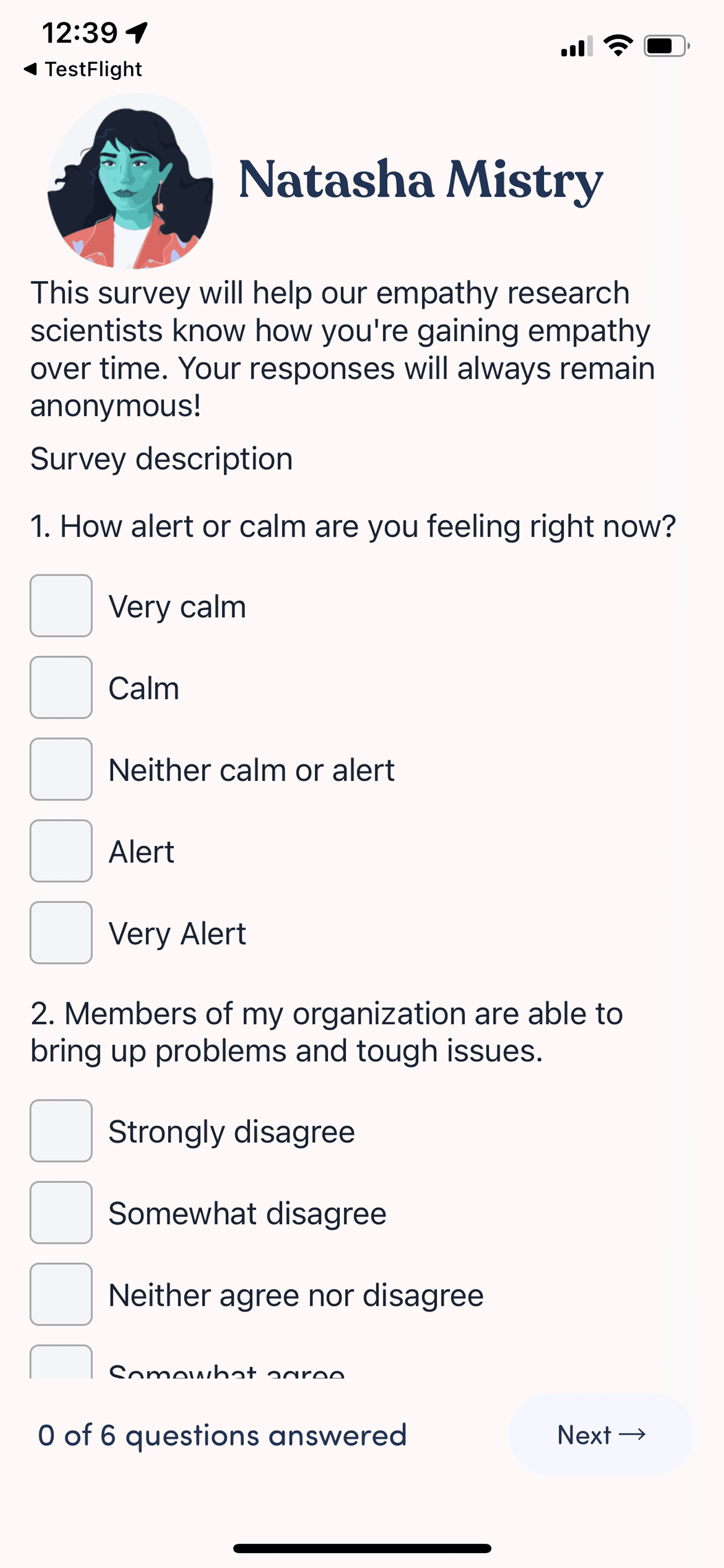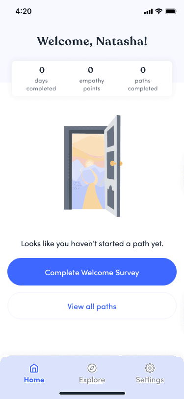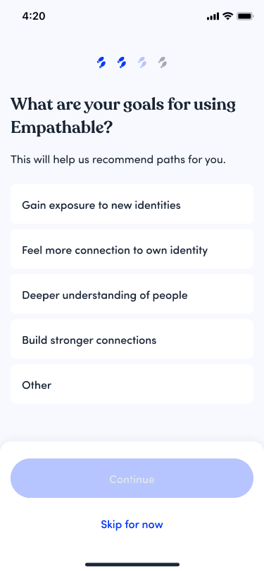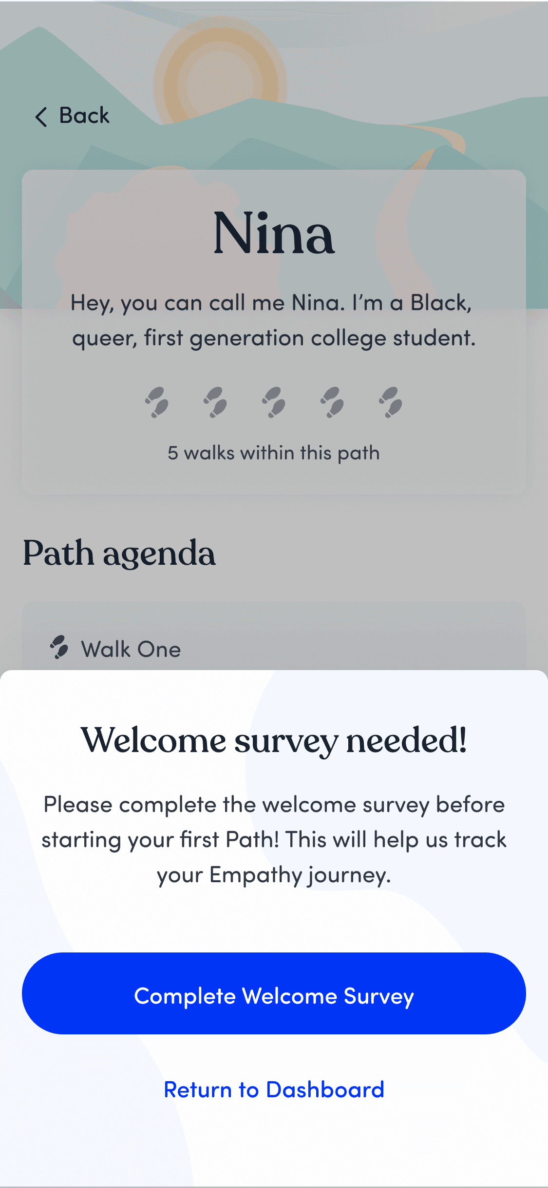 Empathable’s onboarding had to satisfy user expectations and client requirements—like a mandatory survey. I learned how to advocate for the user without compromising business needs, and proposed compromises (like delaying the survey) that improved both experience and value.