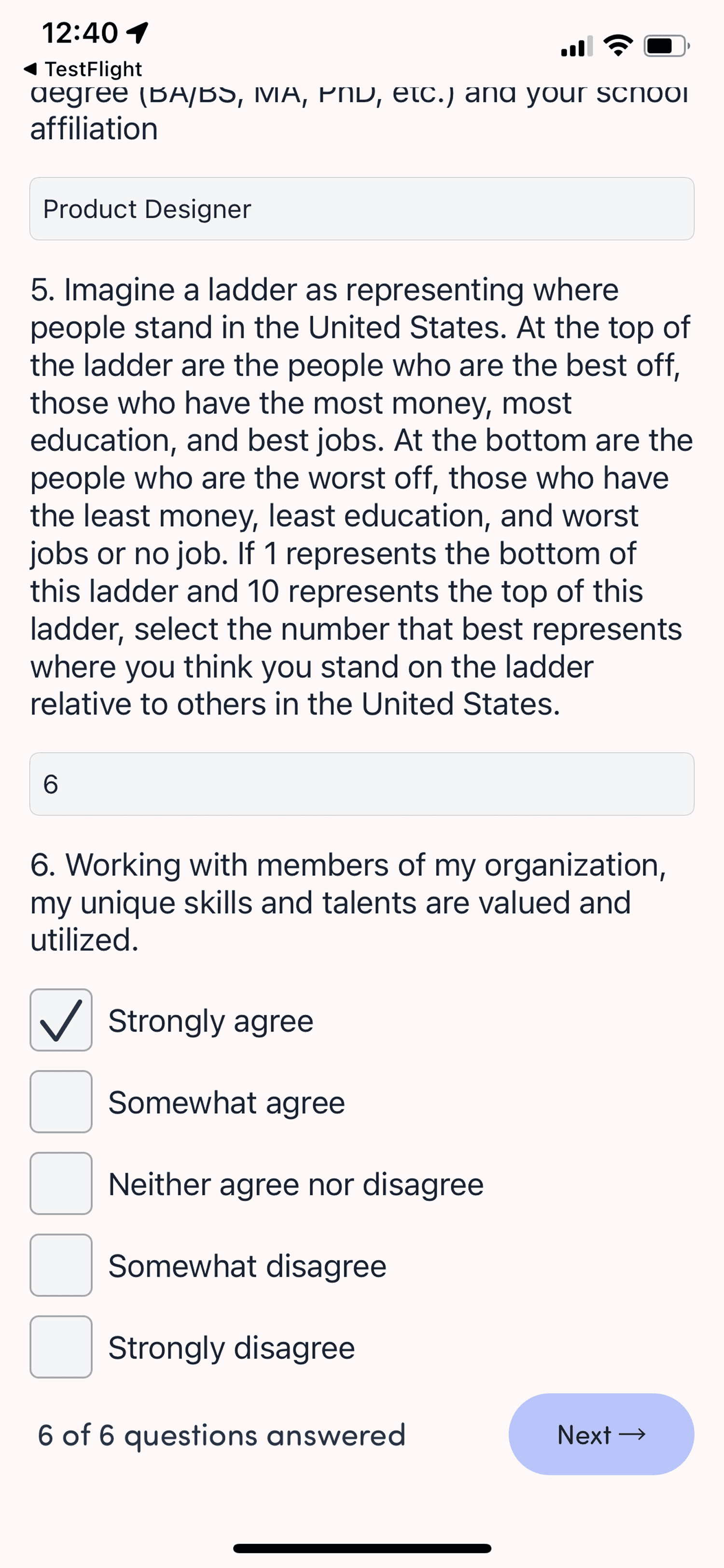 Extremely dense and mandatory survey before ability to even enter the app led to extreme drop off and user fatigue early on when we were supposed to be inspiring users.